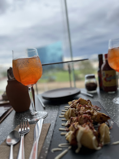 La comida, estuvo muy bien. El único detalle que no me encantó, fue que pedimos una pizza mitad gambas mitad jamón serrano (no recuerdo la especialidad) y traía muy poco de la especialidad, poco jamón, pocas gambas, poco tocino poco de lo que dice que es la pizza. No por eso dejaré fuera que la masa y la salsa eran bastante ricas, pero ese pequeño detalle antes mencionado pudo mucho conmigo para no dar la quinta estrella en los alimentos. LAS PATATAS BRAVAS son excelentes. La promo de Apperol Spritz buenísima.