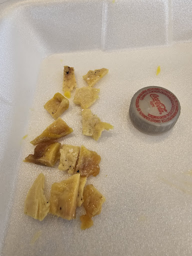 Las fotos que adjunto son la ración del pollo y como puedes ver cabe en una taparrosca, así de pequeña es la porción