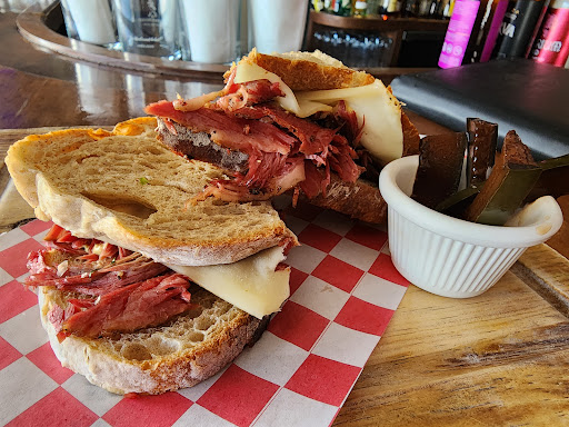 All in all a nice pub. Lots of TVs (weirdly framed with ugly wooden ads), and a stage where I'm sure they have music. Service is pretty slow for sitting at a bar in an almost empty restaurant, you really have to flag down staff to get a drink, order food, etc, nobody is gonna check on you... But they're cheerful and friendly. Look forward to returning.