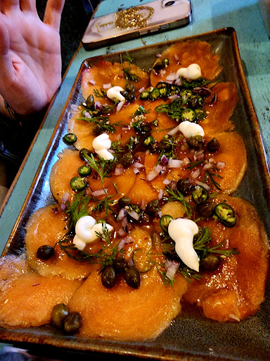 Salmon carpaccio: Good cured salmon is almost impossible to find in most of Mexico. This is better than most, but I don't think it's house cured. Served with garlic crostini, it's a good portion to split, or a light meal.