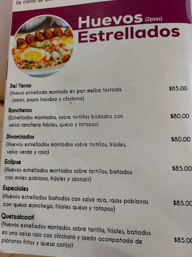 Read moreMuchas opciones de platillos tanto en el menú de desayunos como en el de comida. Creo que es un buen restaurante con buena relación calidad precio, y a precios accesibles. Igualmente el servicio fue muy atento y amable en todo momento. En la hora de comida suele llenarse más que en los desayunos, pero vale totalmente la pena. La única desventaja que le podría ver es que no tiene estacionamiento, pero justo al lado hay una placita donde puedes estacionarte sin problemas:)