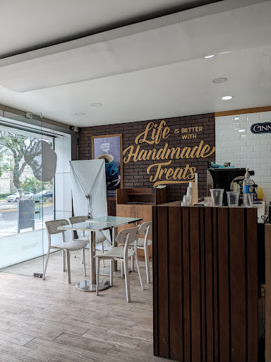Sucursal de la cadena de repostería de origen estadounidense Cinnabon. Ubicada en una pequeña placita comercial en Avenida 43 Poniente esquina con la calle A de Presidente de la 16 de Septiembre. Es una de cuatro sucursales presentes en Puebla de Zaragoza, ubicándose las restantes en Centro Comercial el Triángulo, Angelópolis Lifestyle Center y Plaza Los Arcángeles. La especialidad del lugar es el rol de canela clásico, aunque también encontrarás otros sabores habituales (el Caramel Pecanbon me parece excelente). También tienen café, te y otras bebidas tipo cafetería. El servicio de esta sucursal me pareció muy bueno. El chico que me despacho era afable además de amable. Sus productos son de costo elevado y de porciones un tanto pequeñas, pero de gran sabor y calidad. Aún así, dado que no es algo que consumas habitualmente me parece un agradable gusto...
