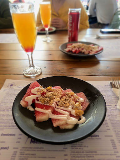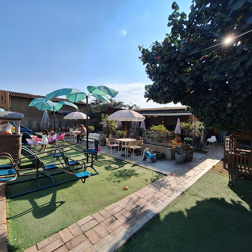 We were there for an early dinner on a Monday at 3 pm, and it was quite empty. Based on the many comfortable chairs at the entrance, and a companion's experience, line ups can be expected on weekends and peak times. The setting consists of a central open space with a playground, fountains with a small elevated water feature designed for child play, and seating for dining surrounded by a large open covered area with more seating. The food was excellent and service was accommodating and friendly. There is also a small covered area with friendly farm animals called la granja. Close to our table was a friendly rooster and hen wandering around the greenery behind the tables. This has been our best dining experience in...