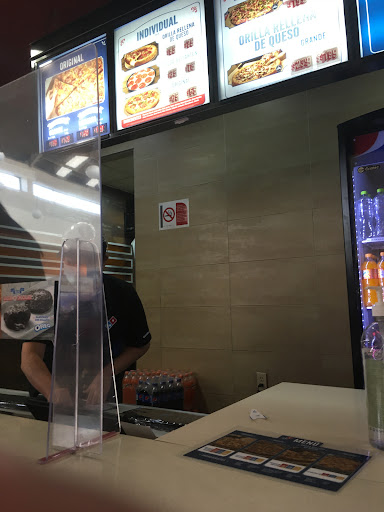 Pésima atención por parte de las chicas que trabajan aquí, fue mi acompañante en búsqueda de una pizza individual original, pidió refrescos también y pagó con un billete de 500, la chica dijo que no podía cobrar dado que no tenía cambio, que fuera a buscar cambio o en su defecto, volviera a formarme en lo que otros ordenaban.