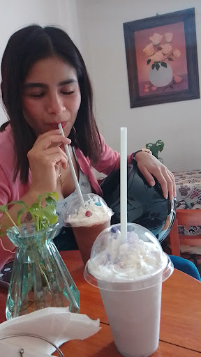 Cafetería 100% RECOMENDADA, se encuentra en el primer piso y también tiene mesas en la azotea (la cual se encuentra totalmente techada) con un ambiente relajado, decoración coqueta tiene mesa para dos en sus dos balcones, maneja unos precios muy económicos que hace mucho no veía en una cafetería, mismo que hacen mucha diferencia contra otra cafetería que se encuentra a la vuelta sobre la plaza principal. El té le gustó mucho a mi hijo, el frapuchino viene en una presentación muy coqueta en una copa grande, el cuernito es de tamaño normal, lo traen calientito y sabe rico, al igual que su hamburguesa (la cual no alcance a tomar foto); a pesar de encontrarse lleno el lugar no tuvimos que esperar mucho para que nos sirvieran, las personas que atienden son muy amables. Por 3 personas fueron $205 cada uno consumió una bebida y...