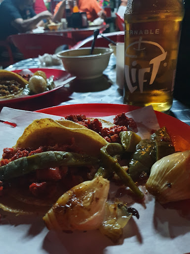 Excelente lugar para ir a cenar, encuentras tacos de todo tipo, de bistec, enchilada, cabeza, cemitas, refrescos, ponche , café, el trato es muy amable y super rápido, los precios son muy accesibles, hay mucho lugar para estacionarse, el sabor y el sazón son exquisitos, un lugar muy recomendado para ir, la atención de los meseros de primera, muebles de plástico y pantalla para ver fútbol, ubicación excelente, muy...