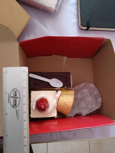 Que te traigan 3 pasteles de 2x2 centímetros por casi $200 pesos no tienen ni tantita vergüenza. Mucha caja para lo que traen, encima todo apachurrado. De los tres pasteles: pastel opera, pastel strawberry y pastel de queso, el único que no estaba seco era el pastel opera, en las fotos lo muestran todo muy normal y uno piensa que por el precio no va a estar tan pequeño, al final terminas pagando unos 68 por un pastel según individual que ni juntando a los tres pasteles...
