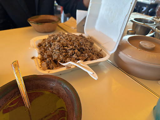 Friends invited us here for late lunch after a meeting. We were quickly seated but the tables needed cleaning. Our sweet waitress quickly took our order and brought our drinks. We decided to order 2KG of birria with broth. The tortillas, salsas, accompaniments came on the side. It wasn't a long wait before we got our food. The beef was tender and with the broth they were juicy tacos and beef soup. The place is simple for...