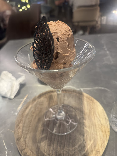 To end the meal, I had the artisanal chocolate ice cream. It leaned more toward milk chocolate than dark, with a smooth, creamy texture. The portion was just right, and it came topped with an elegant edible chocolate leaf a simple but thoughtful touch.