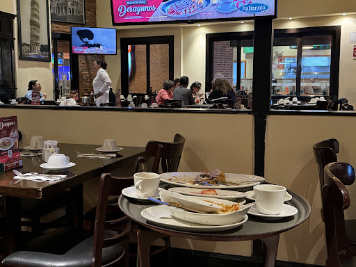 No importa si el lugar está lleno o no, esto, siempre lo hacen… Lo he comentado con 2 gerentes y nada cambia… Es una mala practica que está muy arraigada en la sucursal, no me ha tocado en algún otro Italiannis.. El fin de semana pasado, pedi 3 veces que se llevaran los trastes sucios, 2 veces estaban junto a mi mesa… y lo hacen con mala actitud, como si lo correcto fuera que uno tenga que tolerarlo “porque así es” . También, sonó la alerta sísmica de la plaza, todo el staff continuo, pregunté que era? La mesera dijo “no sabemos, ya salió el gerente a preguntar” y hasta que un guardia de la plaza desde la ventana a señas dijo que era alerta sísmica y había que salír. Evacuamos el espacio, pero el staff nunca salio, y en el estacionamiento del lugar, si vimos a los de diferentes restaurantes que supongo por procedimientos de protección civil, salieron a ponerse en resguardo.
