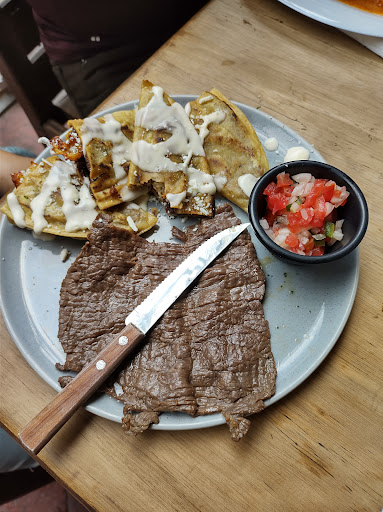 The inner atmosphere of this restaurant is cosy and romantic, especially the view from the window if you manage to take a place there. My husband and I visited this restaurant for having a late breakfast. They offer a list of different main dishes which include a refilled coffee (de olla), a glass of juice, a plate of fruits (a bit of watermelon and grapes sprinkled with honey and amaranto seeds) and a sweet bread. I ordered an omelette which should be served with frijoles refritos and ensalada according to their menu. The main dish was delicious (except totopos which were used as decoration)and frijoles too, but they didn't give me my ensalada. The juice (of guayaba) was too sugary. And they had only two types of sweet breads - concha and cuernito. I wish they had a greater choice. All of these cost 139$. Another disadvantage was that fact that only one waiter was available there on Sunday morning! That is why I suppose he didn't serve everything and wasn't as attentive to the guests of the restaurant as it requires. Plus the music played there was a bit loud and not of a good choice. There are lots of things to make a visit there more comfortable...