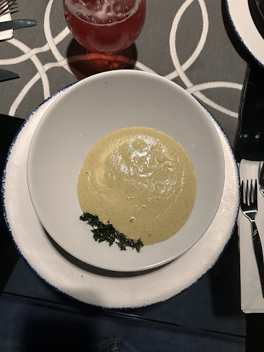Read moreMe lo habían recomendada algunos amigos. Pero sinceramente creo que podrías encontrar un lugar mejor por menos precio. Pedí una crema y un corte y una bebida . Y mis amigos igualmente pidieron algo similar. La crema estaba pasable, pedí una de pistache y los demás de quesos y les costó comerla porque el pan estaba bastante duro. Sin embargo, al traernos los cortes estaban ya algo fríos, cosa que sinceramente es triste porque no esperas que tu siguiente plato llegue frío, por otro lado lo pedí terminó medio y sentí que por el tipo de carne que pedí (una picaña) dejó mucho qué desear, porque estaba muy dura al cortarse (aún no estaba tan fría la carne como para que costara) pero tampoco tenía un sabor sorprendente 😕. Las verduras que pedí pensé que serían más pero dan una zanahoria, una cabeza de brócoli, 3 chiles y algo de cebolla asada (las pedí a la parrilla), pero estas sí ya estaban frías, lo que no me gustó porque igualmente esperas que puedas disfrutarlo con el corte. Por otro lado, la atención fue algo variable, la persona que nos atendió olvidaba lo que le pedíamos, por lo que regresaba constantemente a preguntarnos qué habíamos pedido o simplemente le repetíamos el pedido porque pasaba un rato y no nos lo traían. También el ambiente es un espacio donde tocaban violín o al menos eso nos tocó esa noche y estuvo bien, solo que si vas con intención de platicar podrías no llegar a escuchar bien porque la acústica tampoco ayuda, sin embargo, no es desagradable. En conclusión, los platillos rondan entre los 200 pesos a 400 pesos, por lo que puedes ir gastando al rededor de unos 500 a 700 pesos por persona incluyendo bebidas. Los alimentos no son la gran cosa, creo que es más la vista, qué por cierto de noche no recomiendo porque no se ve tanto. Y la atención y sabor de alimentos podría...