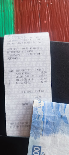 El servicio, aunque no fue malo, no fue suficiente para compensar los inconvenientes con la comida. A pesar de que la atención fue en general cordial, los pequeños detalles en la calidad de los platillos hicieron que la experiencia no fuera tan satisfactoria como se esperaba. Las porciones, especialmente en las quesadillas, fueron un punto de decepción, ya que no ofrecían la cantidad adecuada para lo que uno podría esperar de un platillo típico de este tipo. Además, la falta de opciones al pedir los tamales restó flexibilidad y, en consecuencia, un toque de personalización que sería apreciado.