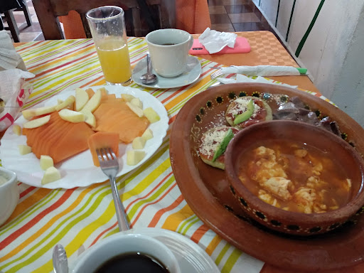 This restaurant is run by a young and reactive staff. A bit off the village square, this spot is worth a visit for a good and cheap breakfast. Many options (breakfast menus) are offered that include a fruit juice, a coffee, pan dulce and either egg/soup/meat-based plate. The meat (cecina) was delicious with the soup, and the fruit plate was a good way to end the breakfast. On the downside, the refried bean was a bit bland. My take: Totally...