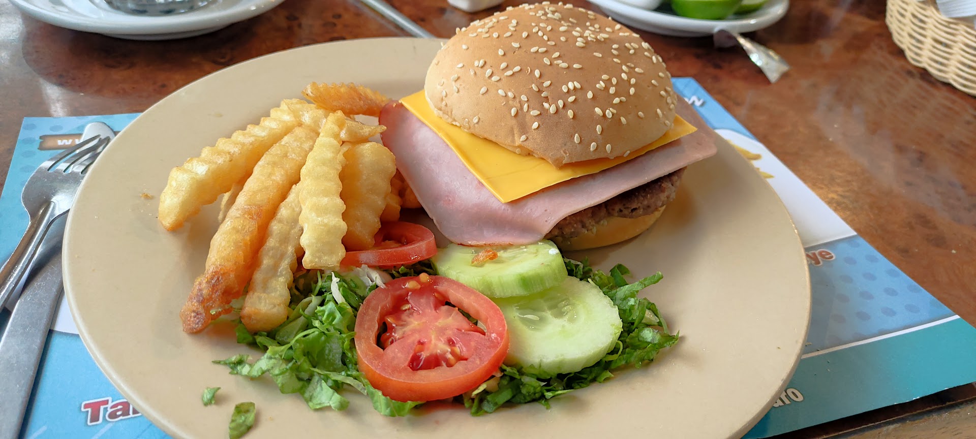 Read morePareciera que el tiempo se quedó estancado en este lugar. Cuando uno entra te da un aire a un establecimiento de los años 80, y no porque esté decorado así, sino que pareciera que no se le ha remodelado desde entonces. La comida está bien servida en cuanto a porción y el sabor es bueno. En definitiva recomiendo el club sandwich y los tacos de pollo. Cuenta en la parte superior un área de juegos para niños, es bastante amplia, tiene 4 juegos diferentes para niños de entre los 3 y los 10 años, sin embargo requiere mantenimiento, y como se ve que la gente no sabe que hay un espacio para niños está descuidado no hay servicio en el lugar en esta sección, le hace falta ventilación y limpieza. Este sería un lugar mucho mejor si le pusieran un poco de atención a...