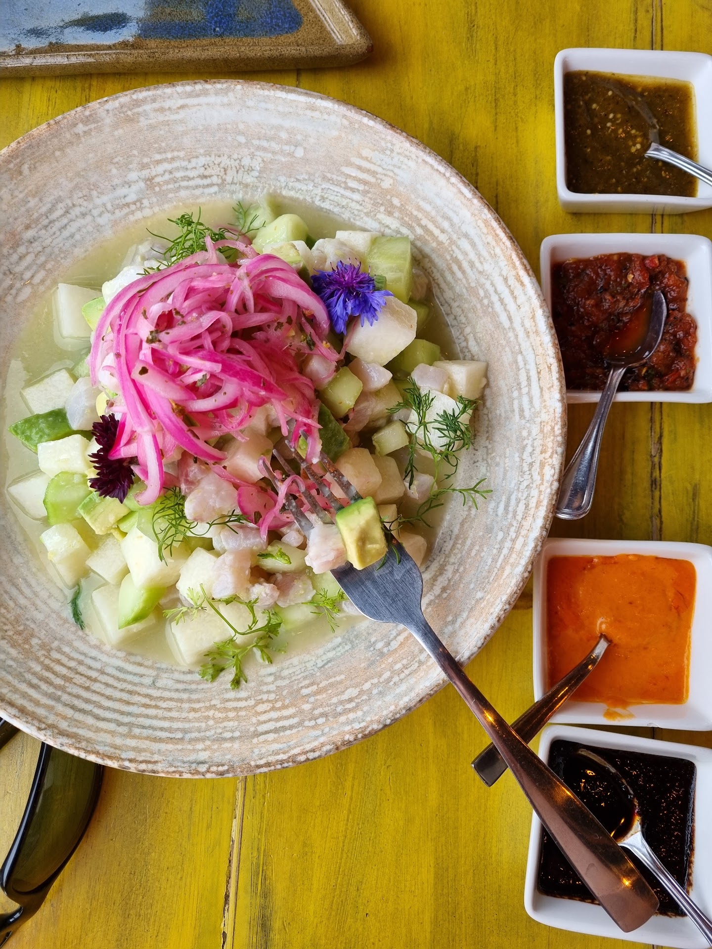Read moreBuena experiencia en general en este lugar. El desembolso es alto, pero cuando uno ve el cuidado y la calidad de los productos, así como el local, la decoración, los empleados, etc., comprende que no es caro. Elevado sí, caro no. Primero hay que decir que el lugar es sobre todo un centro de mixología, lo que significa que a priori su fuerte no es la comida. Sin embargo, este aspecto está realmente cuidado. Llegamos temprano y sin mucha hambre, así que pedimos entrantes y cerveza en primer lugar. El ceviche de Róbalo (lubina en otros países) estaba realmente bueno. Si era lubina de verdad, no puedo asegurarlo al 100%, pero sí he de decir que en el plato había mas jícama que pescado. Aún así, hay que reconocer que el sabor era excelente y a mi modo de ver, bien hecho. Se nota el esfuerzo por preparar el plato como se debe y por emplatarlo en condiciones. La ración del entrante es como para compartir. También pedimos tacos de pescado (aquí sí que estoy casi seguro de que era tilapia); en este caso sí me resultó un poco caro el plato para este tipo de pescado, aunque la porción no era escasa (4 tacos en total, bien servidos, ideales también para compartir) y estaba bien cocinado, así que hemos de aplaudir la labor en cocina. Finalmente pedimos unos Besos de Amor, un cóctel a base de tequila y frambuesa, entre otros, que estaba realmente delicioso. Los cócteles tienen un precio elevado, pero, igualmente, no me parecen caros siguiendo con esta argumentación. Menos aún teniendo en cuenta que estaban a 2x1. La verdad, nos fuimos satisfechos. La atención fue correcta, sin problema alguno y sin sensación de quedar desatendidos o de recibir malas caras o gestos. Sin mayor cordialidad. En esto quiźas podrían agregarle un poco de valor al conjunto (al menos en nuestro caso), dado que si lo comparamos con lugares aparentemente más modestos, no saldrían beneficiados. Esto es siempre una opinión muy subjetiva, depende de muchísimos factores y cada día y momento será completamente diferente. Con todo y con eso, repetiremos, porque en conjunto la experiencia fue agradable. De 8.5 sobre 10. Hay que probarlo....