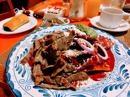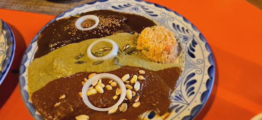 Very good restaurant right at the zócalo in Cholula. My family and i ordered 2 dishes to share. We ordered plato Cholula which came with several antojitos (2 tacos dorados de papa, 2 chalupas, 2 tlacoyos and 2 tostadas). The second dish was enchiladas los ángeles which had 3 enchiladas with 3 direct moles.