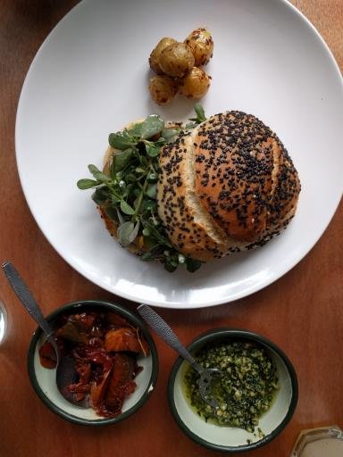 We are happy that we found this place. We didn't know about it and searched on Google that it was close by so we decided to go there. We arrived less than one hour before the closing time but they welcome us in. The menu is not large selection but there are everything, beef, pork, fish, chicken, vegetarian. We had a drink of the day which I believe is guava and mint. My husband is vegetarian so we ordered 2 appetizers to share , a cheese dip and a tempura, and he ordered a portabello mushroom burger while I went for a beef stew. The restaurant gave us a complimentary dish which is just a bite of something delicious. At the end we had a blackberry panacotta which is really yummy.