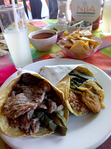 La comida no es buena. Tiene un menú muy amplio pero el sabor no es rico. Le falta sabor rico a las salsas, a los frijoles, al arroz etc. Tiene ambiente de fonda no de restaurante y tienes que chutarte toda tu estancia con pura música cristiana. Los tacos llevan papa, arroz y nopales, cómo si fueran tacos de guisado y tampoco están ricos. Un arroz descolorido e insípido que no es del día, unas papas que son como puré, no son papitas fritas ricas. Pensé que eran taquitos de carnita asada o ricos, pero ni la longaniza es sabrosa. El servicio no es malo, son atentos y rápidos, las tortillas son hechas al momento, pero eso no basta para tapar lo regular de la comida y del ambiente, es como una fonda que tuvo mejores tiempos y ya va en declive. Tienen que cambiar de cocineros, alguien que le dé un rico sazón a la comida, tienen todo para ser excelentes: un rápido acceso, lugar de estacionamiento, amplio comedor, personal...