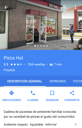 Read moreHice una compra por medio de Uber eats el día de hoy viernes 24 de Mayo del 2024. Lleva por nombre extrema mix de carnes. Cuando abro la caja , me topo con que era una extrema falta de carne. Trae unas bolitas de soya sabor carne , el queso todo seco , la pizza toda dura y una rayas como de salsa de tomate. Pésima experiencia. Ultima vez que compro en pizza Hut. Y bueno , Domino’s pizza sacándonos del apuro… la pizza de pizza Hut es la evidentemente toda...