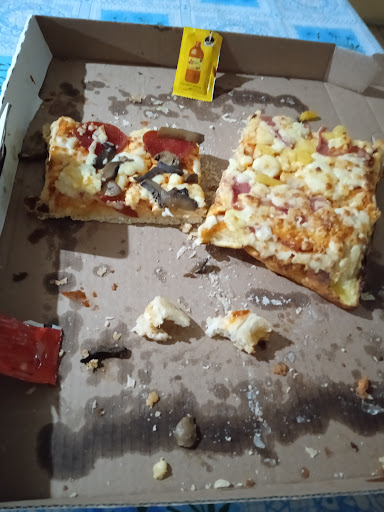 Las pizzas son de pan semi grueso y traen porciones raquíticas de ingredientes, lo único que traen suficiente es queso y aceite/grasa. El sabor no está mal pero definitivamente hasta Domino’s le pone más ingredientes, quizá no de la misma calidad.
