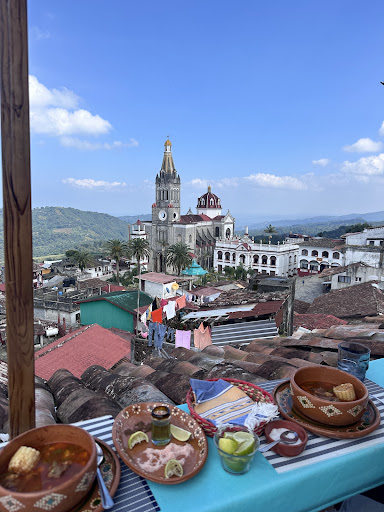Cuando por fin hubo espacio en la terraza, nos dijeron que sería en la barra, a lo que tampoco tuvimos problema ya que solo éramos dos personas, las vistas al pueblo desde ese punto fueron lo mejor. Sin embargo, esperamos cerca de una hora a que nos llevarán los alimentos, cuando solo pedimos dos quesos fundidos y dos limonadas. Cuando por fin llegaron no fueron mucho de nuestro agrado, las porciones quedan a deber para el precio y ya estaba algo frío.