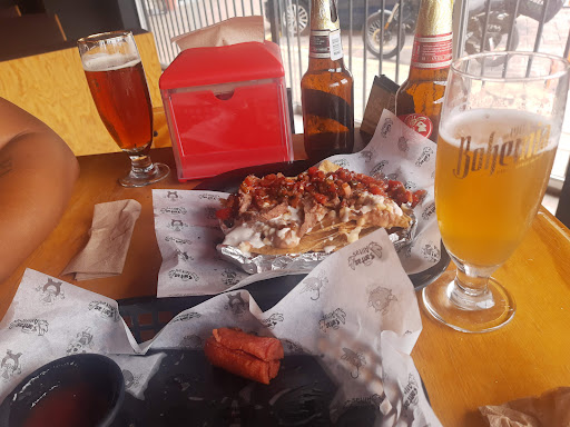 Read moreLa primera vez que fui, estuvo todo super bien, ya la segunda vez, la mesera super pesada fuimos en un cumpleaños y te aplican la promo santa atascada, donde según comes alitas y snacks y tacos, pues para activar la promo primero te atascan de papas fritas, entonces te llenas de papas y la comida tarda para salir, queríamos jugar en el billar y que según se había roto, las alitas estaban secas, eso sí los aros de cebolla son riquísimos! Y las...