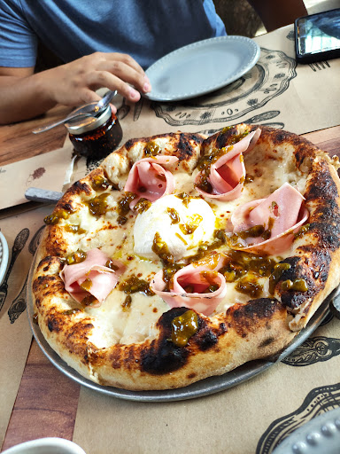 Sin duda de nuestra visita el platillo estrella fue la pizza de pistache y mortadela con burrata, simplemente fantástica. Muy muy recomendada, perfecta para compartir.
