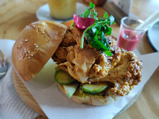 Read moreVegan restaurant! We are vegetarian and it was good to take a break from eating too much cheese at other restaurants. Located inside the courtyard of the train station across from the tunnels/pyramid ascending path. It took some waiting as everything was freshly prepared from quality ingredients. The grated carrot salad on tostadas was phenomenal. So was the mango-maracuya-ginger drink. The cauliflower burger.... I mistaken thought would be a breaded patty of grated cauliflower... instead turned out to be a big piece of cooked well seasoned cauliflower that I just ate on its own and was too full to eat the burger buns. Prices appear expensive but portions are big and lot of effort and ingredients go into it making...