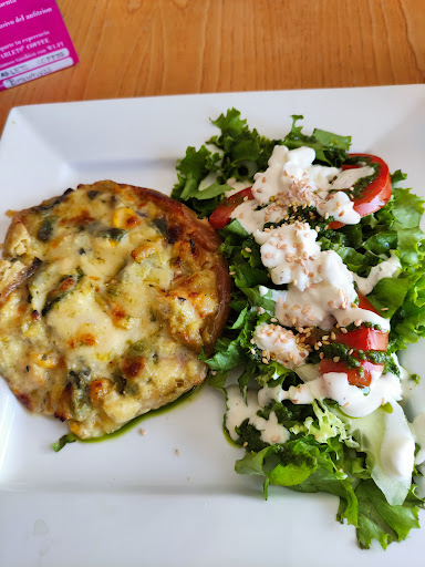 Read moreThis was such a wonderful find! Good, affordable food, clean and peaceful place with a 5-star view of the cathedral. I loved the fact that it had salad included in the package (the salad dressing was really good). My son had a mustard chicken panini ("petite" package, which is half a sandwich, and it was more than enough, and the bread was very soft, it comes with a salad and a drink andcosts only 77 pesos, which is less than $4 dollars). I had a tarlet deal (which is something like little pizza - lots of cheese, the portion is not too big but enough). The service was a bit slow, but we did not mind to sit and just rest from all the walking and enjoy the cathedral view from the 2nd floor of the restaurant). I will definitely return...