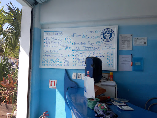 Read moreUn lugar pequeño, pero muy lindo y limpio. La carta tiene un poquito de todo. Tostadas de ceviche, tacos de pescado, burritos... recomiendo los tacos de pescado al pastor. También hay aguas frescas de limón con chia y limón con hierbabuena. Tienen una buena oferta de salsas (desde picosas, hasta nada picosas) y complementos para los taquitos o tostadas (como cebollitas, lechuga o pepino). El chico que está en la barra es muy amable y está al tanto de que todo vaya bien. Definitivamente un lugar muy recomendable cuando vengan a Pto Morelos....