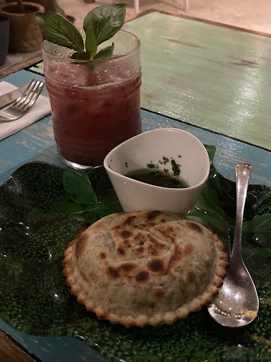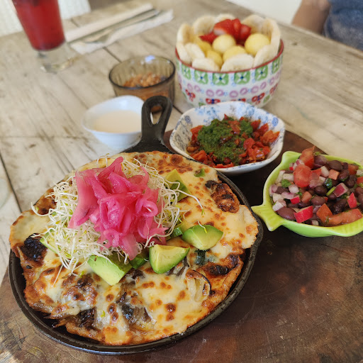 Read moreWe ate there twice once for brunch and dinner and I thought the lady was called Layla but it actually means something as I heard a man discussing it but I think the lay was for the sleeping in the guesthouse but I couldn’t hear the rest. The brunch was very tasty. Dave had a very tasty frittata and I can’t remember what I had. For dinner I had a mushroom stew with mash potatoes but sadly it was made with soya sauce so it was very salty and overpowering flavour and I am not a fan of that taste and I don’t put much salt on my food. The free extras were really tasty because they use organic and I love organic carrots and the dip wasn’t guacamole like we thought but broccoli. It was expensive but it was organic food. The juices were tasty. I had a warm drink in the evening and because the spiciness was overwhelming I asked for more warm milk, for no extra cost. The guy in the evening was friendly and chatty guy. Which was lovely. Good food...