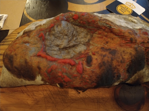 Die schwarze Pizza, die ich genießen durfte, war eine Offenbarung: eine perfekte Balance zwischen Knusprigkeit und Weichheit, mit einem Teig, der so charaktervoll war, als wäre er im Herzen eines Vulkans geformt worden. Jeder Bissen war eine Geschichte, ein Geflecht von Aromen, das die Gedanken auf eine Reise schickte.