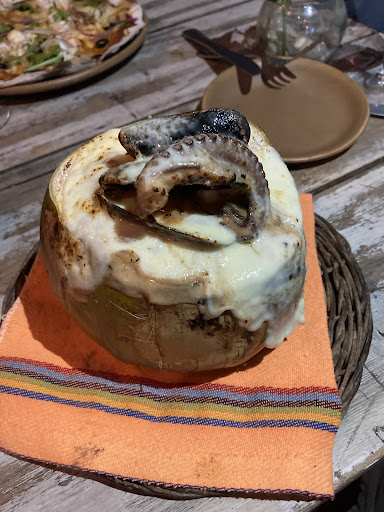 My partner had the perfect dish while mine was completely ruined from poor cooking techniques. The fantastic plate was the coconut stuffed with seafood with a wonderful presentation and even better flavour profile. The 495 peso/ $25 USD lobster pizza (one of the most expensive meals they offer) had an undercooked crust and overcooked lobster, showing a lack of expertise not only in pizza, but in seafood as well. We ate half the pizza out of desperation for food but left the other half for the trash.