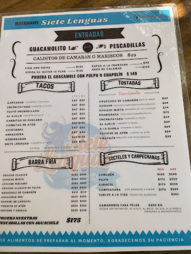 Our favorite spot in the Colonia side for seafood. Everything we ate was delicious. Every ceviche was fresh and beautiful, tuna tacos were great, the siete lenguas house sauce on shrimp was out of this world. This was hands down my favorite food in town and we ate out twice every single day and got to try out a lot. Tacos are special, shrimp and octopus were very good too. Ceviche exceptional. There was live music there on Saturday night and we had a lot of fun. The chef is from veracruz and her food is just a different class of...