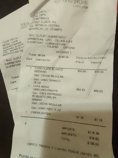 Read morePésimo servicio, hoy 03 de diciembre 2022 , por parte de la supuesta encargada, una mujer morena de complexión robusta, grosera y prepotente, no entregó sostén del vaso de chocolate que se pidió para llevar, lo pague nuevamente y se volvió a resbalar por no entregar el soporte y al pedirle que como en todas las cadenas me diera el chocolate para el niño ( pues ya habían sido dos derramados y pagados en menos de 5 minutos exactamente fuera de la tienda por no tener el soporte ) se puso a agredirme en frente de mi familia y pedirme que me retirará del establecimiento. Pésimo servicio Pésima empleada, Ojalá quien está a cargo de esta tienda tome en cuenta mi comentario para que está mujer no deje sin clientes el café. Por mi parte, JAMÁS vuelvo a consumir en este lugar , anexo los tickets que se pagaron los dos servicios Además de que se me negó el acceso a baños, 😡 por mi parte, llamaré a PROFECO para ver si algo...
