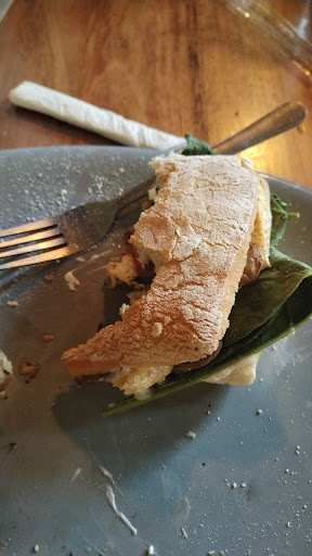 La verdad es que llevaba muy buenas espectativas respecto al sabor de la comida y definitivamente pues no fue lo que esperaba. Pedí un sándwich de pollo, que era de un pan super suave, el cuál ni siquiera se tomaron la molestia de dorar un poco, para darle consistencia y fuerza. Esa suavidad provocó que con los ingredientes se remojara y fuera imposible agarrarlo para darle una mordida, a pesar de llevar una costra de queso, ni así le da consistencia. El pollo, demasiado seco, sin sabor de ningún tipo, se sentía como una fibra seca al masticar. Lo acompañan con una ensalada, que estaba buena, más no deliciosa. A la mesa no te acercan más que tus cubiertos y servilletas.