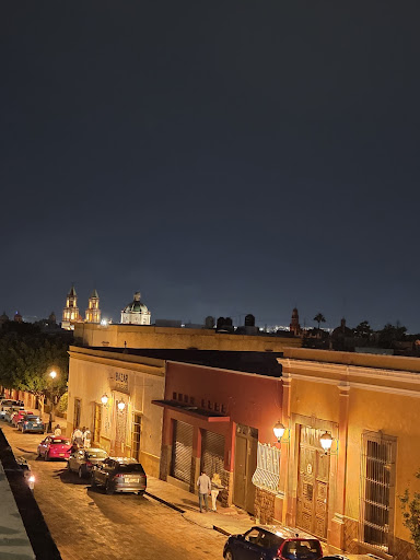 The three young hosts at the reception were not only welcoming and funny but also had great haircuts—my kind of people! They pointed us toward the stairs, where our waiter was already waiting to escort us to a table with a breathtaking nighttime view of Querétaro.