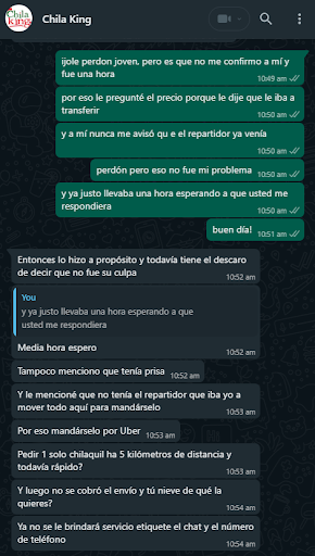 Read morePÉSIMA ATENCIÓN AL CLIENTE!! Levaba pidiendo chilaquiles a domicilio ya 2 años con ellos a plaza Ubika ya que trabajo en una oficina y al mandarle mensaje de WhatsApp me contestó muy amable el chico, pero literal tardó en contestarme 37 minutos para confirmarme mi orden. Después me contesta y me pregunta que en dónde sería y los detalles de la transferencia y el costo del envío y simplemente le puse que le agradecía pero ya había encargado otra cosa, y el muchacho se súper enojó porque él ya había mandado al repartidor SIN SIQUIERA CONFIRMARME MI ORDEN y me dice que "lo metí en un lío" (por audio). Hasta ahí todavía con un tono adecuado y simplemente le comenté que eso no era mi problema ya que yo me quedé esperando a que me respondiera y me responde "media hora esperó, tampoco mencionó que tenía prisa" inclusive me dijo que de qué quería mi nieve jajaja o sea una persona FATAL para atender un negocio con venta directa. Aquí la conversación del chat. LÁSTIMA DE ESE EMPLEADO QUE TIENEN AHÍ, porque la verdad esos...