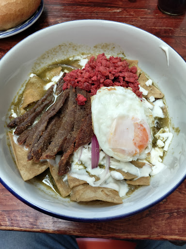 Read moreLos peores chilaquiles que he comido en un buen tiempo. Una salsa demasiado picosa, innecesariamente, no significa una buena salsa. Puro chile, sin sabor. Precio demasiado elevado para la calidad y porción servida. La cereza del pastel es su pésima atención. Primero me reciben con suma descortesía, diciéndome tajantemente que espere para ser atendida, sin responder el saludo de buenos días, para luego empujarme al pasar para atender a los comenzales sentados mientras espero a que me cobren en caja. No conformes con esa majadería, me sirvieron mal mis 3 órdenes, las cuales pedí todas...