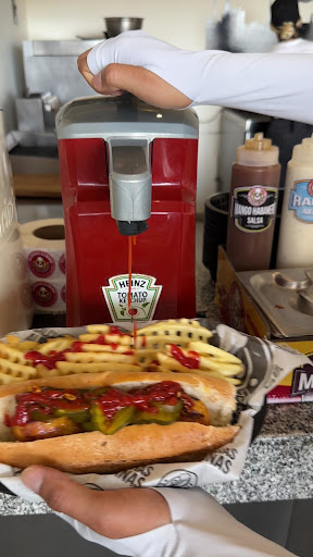Read moreLas salchichas son super ricas pero son muy pequeñas a comparación del pan. Deberían contratar a gente que comunique más y no solo responda con si y no, por más que preguntábamos no tenían buena comunicación. El ambiente se siente super solo y oscuro.Venden unas bebidas que dicen que son mexicanas, están super ricas si te gusta lo gaseoso...