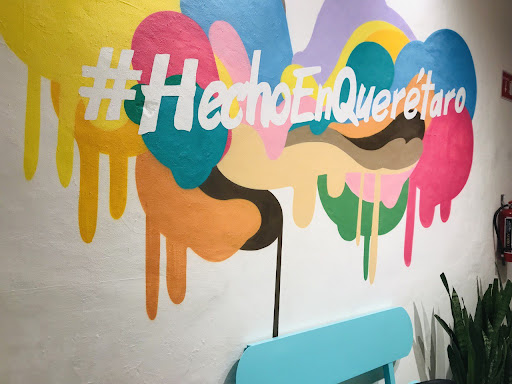 Justo en la entrada encontrarás en la pared el mural colorido 🎨 con #hechoenqueretaro, hay una banquita de forma de helado 🍦, enfrente hay 3 cuadros de una mamá, un papá y una niña comiendo helado, así lo percibo, no es todo, volteas al techo y taran colgantes en forma de helado. 🍦🤩 Sus macetas también simulan ser un helado. 🍧😅 Tienen un letrero que dice “Ice Cream you Scream we all scream for Ice Cream”. Neta hay mucho que describir del lugar. 😅😉