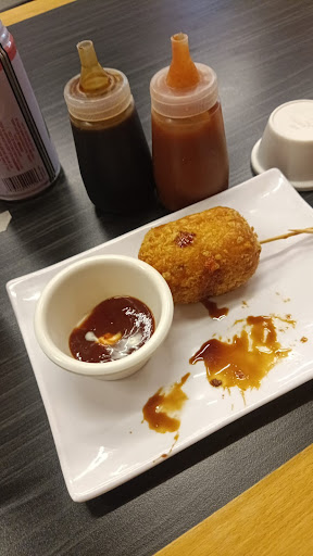 También probé la brocheta de queso con plátano. El aderezo que acompañaba, una mezcla de catsup y mayonesa, o sea, ¡no son papas a la francesa! fue una mala elección y no complementaba bien los sabores. La salsa agridulce que tenían en la mesa tenía un sabor demasiado fuerte a soya y estaba super salada.