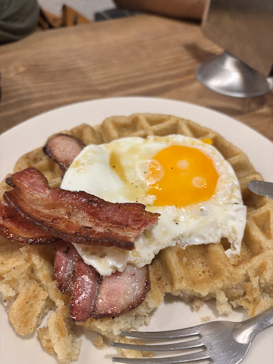 Read moreDesayuno entre amigos el 17 de diciembre de 2024, $285.00 promedio por persona. Mis amigos se expresaron bien del pan, en especial de los rollos de canela. El ambiente es agradable y la forma de servir o emplatar los alimentos también, fuera de lo común, lo que se agradece. Pedí que me recomendaran un platillo representativo del lugar, pero en su lugar me recomendaron los más pedidos, esperaba que el lugar tuviera un platillo insignia. Mis compañeros y yo pedimos chilaquiles de la olla y frittatas. Les pregunté a mis amigos sobre los chilaquiles de la olla y me comentaron que bien sin nada más extraordinario, en lo particular pedí frittata con tocino, insisto, los platillos se sirven muy bien presentados, aunque en mi frittata nunca me enteré de la presencia del tocino, el queso gratinado es insípido, ahora, la ensalada de espinaca como guarnición, esa sí, espectacular. La salsa macha solo sabe a semillas con aceite de oliva. Antes de ir al restaurante vi las opiniones y creo que coincido en los comentarios relacionados con la decoración del lugar y presentación de platillos, así como con lo insípido de los platillos, creo que la administración ya debe tomar acciones sobre ello, pues la joya de cualquier restaurante sonlosalimentos y cada restaurante debe presumir su platillo insignia, además del ambiente y decoración del lugar. Me gustaría probar las pizzas y sándwiches, pero antes visitaré otros lugares que tengo en agenda. En tanto, a mis amistades les podría recomendar otras opciones de desayuno con platillos más tradicionales, aunque su presentación sea menos innovadora o vistosa, me convence más quedar satisfecho en cantidad, sabor y precio. Olvidaba comentar, el aroma del café americano es verdaderamente exquisito, viene con alta concentración de cafeína, me duró todo el día, aunque su consistencia es liviana, me hubiera gustado...