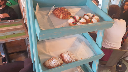 Read moreLes comento mi experiencia el lugar está x la comida fue buena el café también pero el servicio pésimo yo pedí un croissant de roast beef a mi punto de vista es una carne normal no está mal pero le falta mucho para llegar hacer un roast beef pero está rico el croissant llevo más de 15 años dedicándome a la cocina y pues es complicado que me timen tan fácil sobre la comida bien viene la parte del servicio pido la cuánta a un mesero y nada después me dice ese mesero ya le trajeron la cuánta y le dije no entonces el mesero que me estaba atendiendo andaba en otro lado menos en su puesto aquí viene mi molestia me trae dos tickets que uno era de el área de panadería y el otro de la cafetería le digo cuánto sería en total? A lo que me dice pues sume las dos cuentas y yo así mi cara de osea como tú trabajo es tráeme ya la cuenta lista para pagar y no tengo por qué hacer la cuánta yo pero bueno saque mi celular ya hago la cuenta me cobra el primer ticket me dice de la propina obvio no deje por qué en el rato que estuve ahí no me volvieron a visitar le falta algo todo bien nada me va a cobrar lo del segundo ticket su terminal no servía y otro rato en lo que anduvo buscando una terminal para cobrarme cuando me vuelve a sugerir propina yo por respeto no le dije nada pero creo que como mesero debería saber el si su trabajo fue bueno o no para solicitar una propina en fin comida buena pero le falta más pasión para que sea perfecta servicio pésimo.