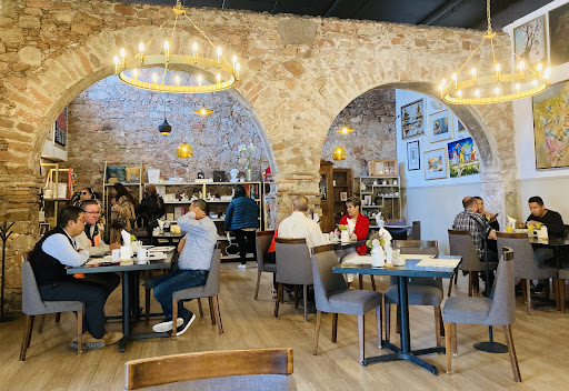 Read moreEl lugar bien ambientado con música de violín y piano en vivo. Pequeño y acogedor con obras de arte en exhibición a la venta. La comida quedó a deber, la cazuela(huevo en cama de frijoles de la olla y chorizo)con un sabor muy condimentado y ácido que dominó completamente el sabor a chorizo de baja calidad, no pude comer ni la mitad. Pedimos pan con aceite de oliva como entrada y el pan estaba frío, con consistencia muy blanda sin sabor y la pasta de jitomate con aceita de oliva estaba refrigerada y claramente no era de elaboración reciente. Pedimos pan dulce, una concha de vainilla y un rol de canela y estaban bien a secas, fríos como pan de tienda de conveniencia. Lo más rescatable son los chilaquiles, bien presentados con jarra de salsa para servir al gusto y los huevos divorciados, en su punto y de buen sazón. El café americano de refill no es el mejor, si te gusta el buen café, pide mejor el de especialidad. Pasamos buen momento en familia, pero por los precios y la pretenció de exclusividad del lugar, esperábamos un mejor sazón y calidad en los alimentos. No...