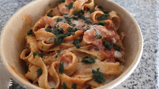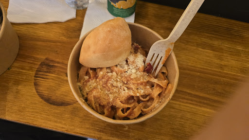 Nos sorprendió gratamente durante nuestra búsqueda de un lugar de pasta cerca del centro. Desde la primera visita, sentimos que esta opción destaca por ofrecer un sabor artesanal y auténtico, alejado de productos muy procesados o saborizantes artificiales. La calidad de las pastas es genuina y bien lograda, lo cual se aprecia en cada bocado. Sin embargo, las porciones no son muy grandes, por lo que podrías quedarte con hambre si solo pides una pasta. Aun así, los precios son razonables para la calidad que ofrecen: no es un lugar barato, pero tampoco es excesivo.