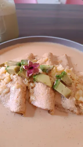 Fui con una amiga y pedimos Encacahuatadas (con chipotle), Chilaquiles del Huerto (verdes) y Hotcakes Peonía (con mazapán). Mi platillo llegó con una presentación muy bonita pero frío, pedí que me ayudarán a calentarlo y al cabo de un buen rato (recordándole a uno de los meseros que faltaba mi comida) me las trajeron totalmente diferentes (sin su presentación del inicio, sin el queso que tenían encima y con un montón de salsa de cacahuate encima como si se lo hubieran puesto al eventón) y casi igual de frías. Sospecho que quemaron las pasadas porque en verdad tardaron demasiado en regresármelas, y como comenté arriba, ahora sin queso e igual de frías... Ahora en su sabor, entiendo que como su nombre lo dice sepan mucho a cacahuate pero el sabor después de un rato es fastidioso porque no tenía nada que contrastara a su alrededor y tampoco sabía a chipotle, sentí como si hubieran molido muchísimo cacahuate con agua y eso fuera la salsa, muy espesa y plana.