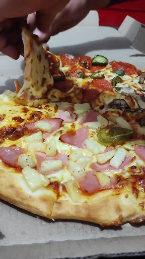 El día de mi visita una pareja regreso con un box (el que está en promoción una caja con tres compartimentos) quejándose de que su pizza tenía un sabor a pescado.