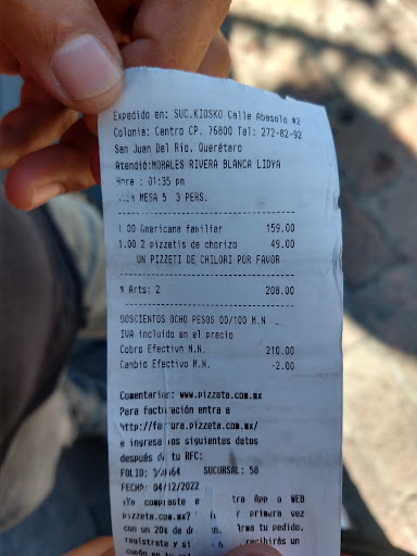 Read moreCuando realizamos nuestra orden la operadora NO nos explicó que nuestra pizza se sujeta a un paquete y no 1 pizza sola, Cuando solicite una explicación reafirmo que me había comentado, lo cual NO es verdad; Posteriormente queríamos comer en el lugar y nos negaron el acceso según nos comentó la operadora por que el servicio es diferente, tampoco lo aclararon al entrar; Después de realizar nuestro pedido y lo SUCEDIDO nos comentaron que en media hora tardaría la Pizza y Tardo MAS DE UNA HORA. Fui visitante por primera vez en este lugar y NO RECOMIENDO EL SERVICIO, El TRATO Y SU ATENCIÓN AL CLIENTE, ASI COMO SUS PRODUCTOS DE ESTA PIZZERÍA. PESIMA SUCURSAL. RESEÑA DE UN...